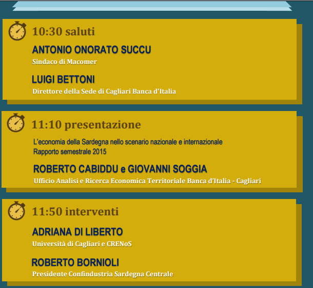 MACOMER. Si terrà domani, Giovedì 12 Novembre, alle ore 10.30 presso le strutture delle "Ex Caserme Mura", la presentazione al pubblico del Rapporto di aggiornamento congiunturale 2015 della Banca d'Italia sull'economia della Sardegna.