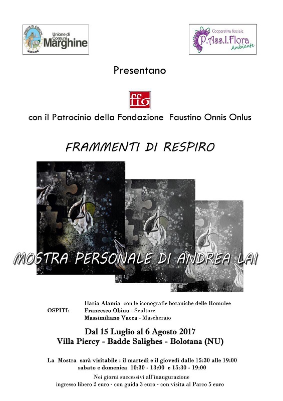 La mostra nel C.E.A.S. di Badde Salighes avrà come ospiti, oltre  Andrea Lai, Ilaria Alamia con le Iconografie Botaniche delle Romulee, lo scultore Francesco Obinu Scultore e il Mascheraio Massimiliano Vacca.