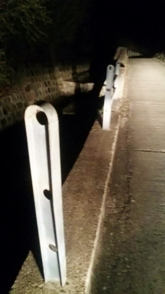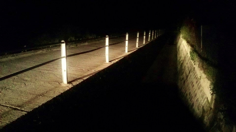 In alcuni tratti le tre strisce di elementi che costituiscono la struttura sono state interamente sottratte, creando così dei pericolosi vuoti lungo il ciglio della strada, che rende quindi il percorso privo di una anche minima protezione dal fossato che lo fiancheggia.