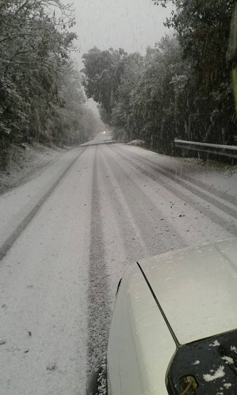 La foto, che immortala il tratto di strada in Località Pabude e la nevicata in corso, è stata scattata questa mattina da Antonio Urrazza.