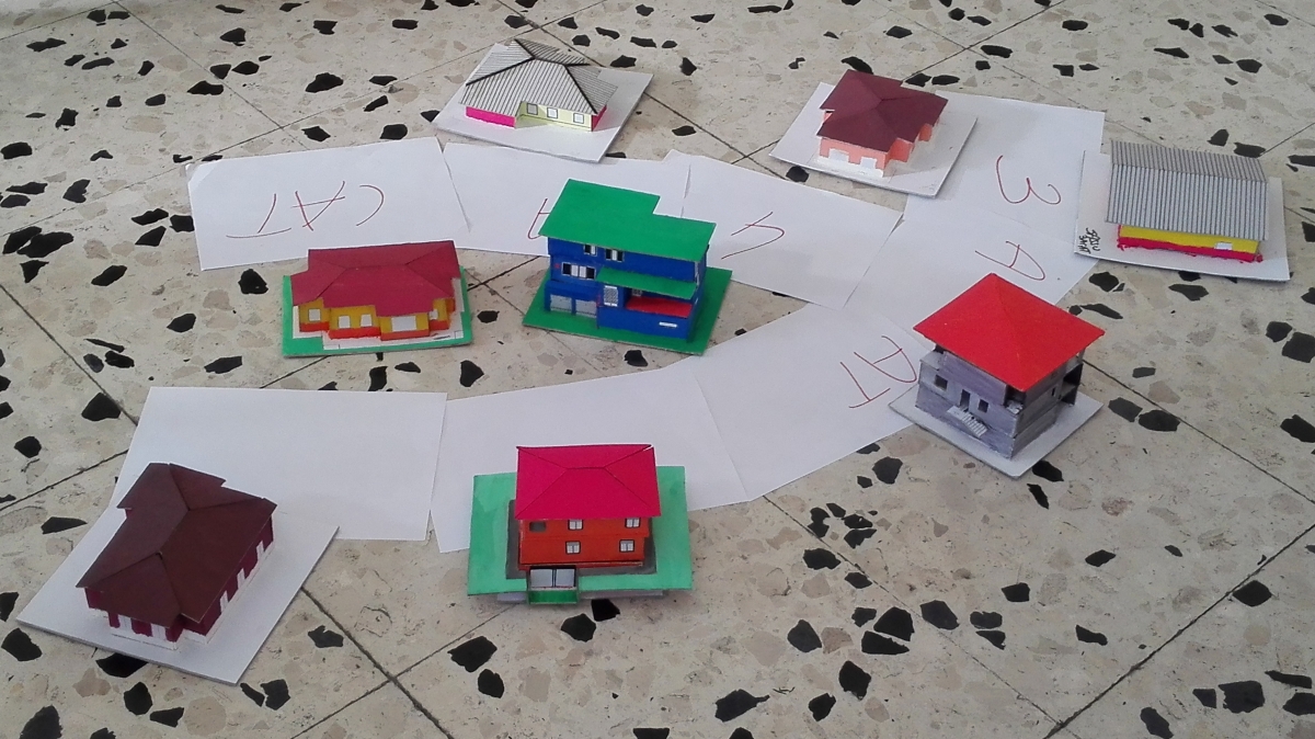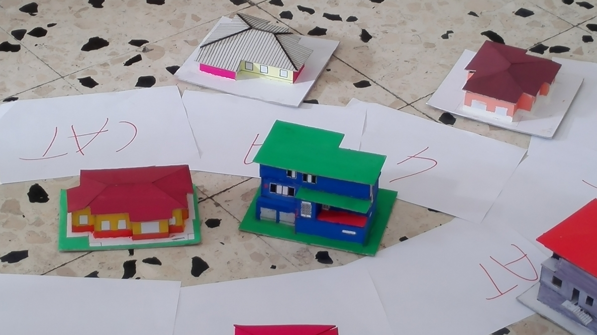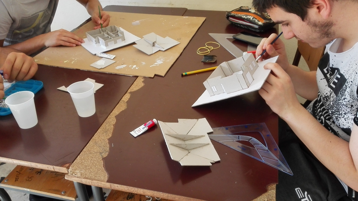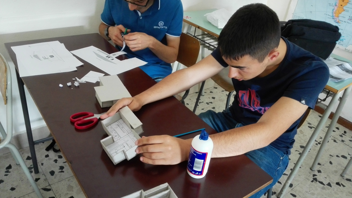 Il 1° laboratorio di modellini del corso è stato completamente realizzato in classe con l’applicazione delle competenze acquisite , modellini realizzati con l’utilizzo di materiali e attrezzature minime ( cartone pressato , squadrette , forbici , taglierine , colla , tempera e pennelli ) e riprodotti in scala 1/100 .L'esecuzione in laboratorio è stata preceduta dalla progettazione architettonica , con metodo tradizionale ( matita e squadrette) e successivamente sviluppato con disegno al computer con AUTOCAD .