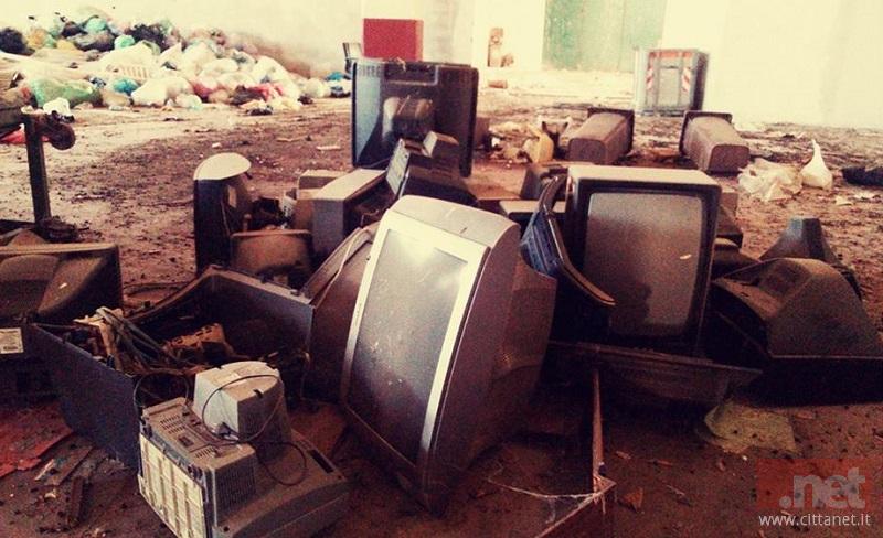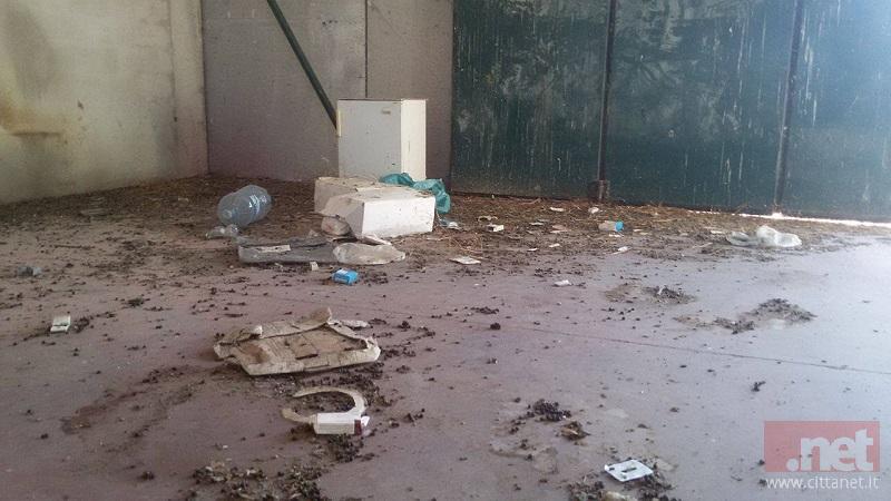 Le foto che potete scorrere in alto raccontano ciò che abbiamo trovato al suo interno: Rifiuti, rifiuti di ogni genere, stipati dentro i grandi stanzoni della struttura, tra l'altro meticolosamente differenziati; da una parte i frigo, dall'altra materassi e divani, dall'altra televisori e poi plastica, bustoni di plastica differenziata e ormai sparpagliata per tutto il pavimento; e ancora, cassonetti per la differenziata e addirittura medicinali. Il tutto circondato da un tappeto di escrementi di pecora e dal guano degli uccelli, traccia indelebile della vita che, nonostante la presenza dei rifiuti, si è insediata nel sito.