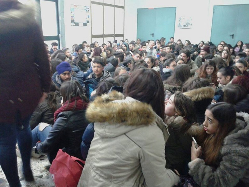 Una situazione non nuova che ha, evidentemente, esasperato gli animi e fatto scoppiare la rivolta degli studenti: dopo la riunione dei rappresentanti di classe, alle ore 11 si è deciso di interrompere le lezioni, abbandonare le classi ed esprimere tutto il proprio disappunto in un sit-in nell'atrio della Scuola.