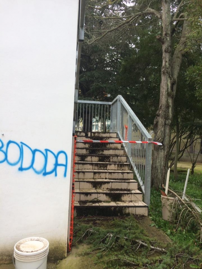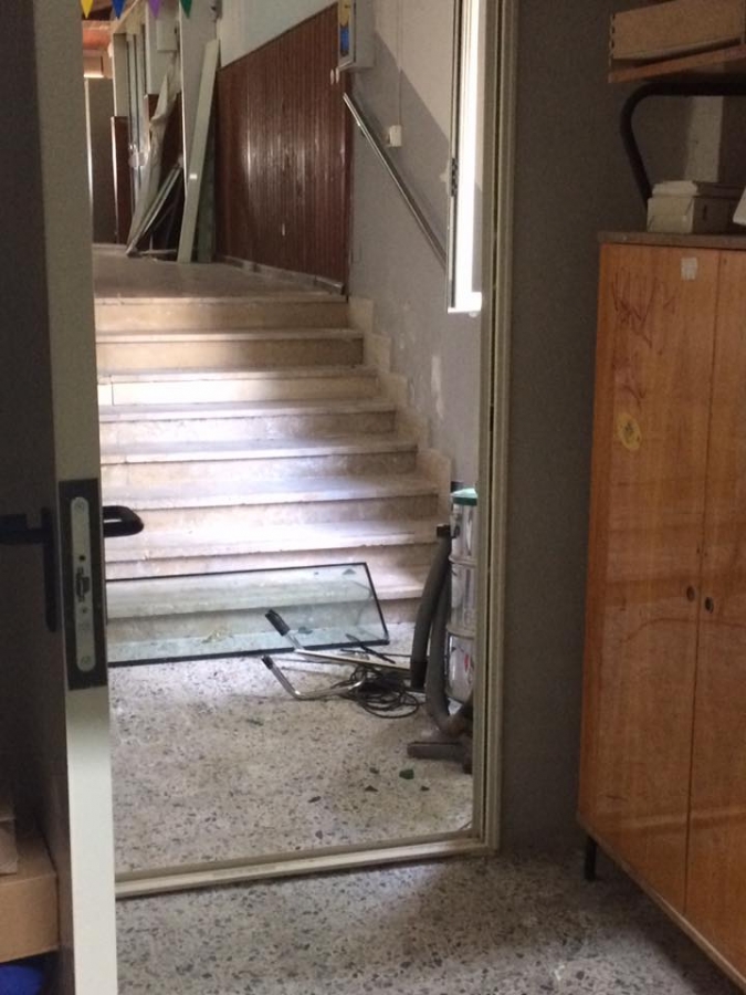 A darne notizia è l'Assessore ai Lavori Pubblici del Comune Marco Manus, che su Facebook ha pubblicato le foto (in alto) che certificano la situazione che questa mattina, all'apertura della scuola, si è presentata sotto gli occhi degli operatori.