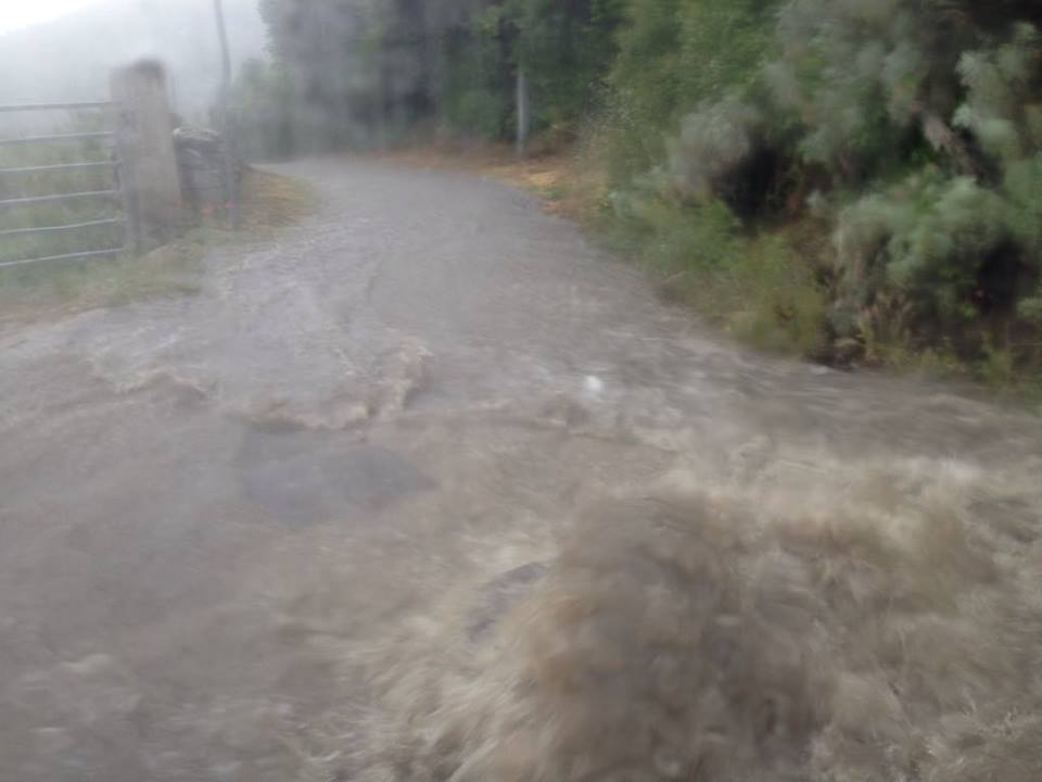 BOLOTANA. Ancora una bomba d'acqua sul Marghine: se ieri pomeriggio un violento nubifragio si era abbattuto tra Silanus e Bortigali e nella zona di Campeda, causando la sospensione della tratta regionale del treno Macomer-Ozieri-Chilivani a causa dell'esondazione di un rigagnolo che ha sommerso i binari, oggi è la volta di Bolotana.