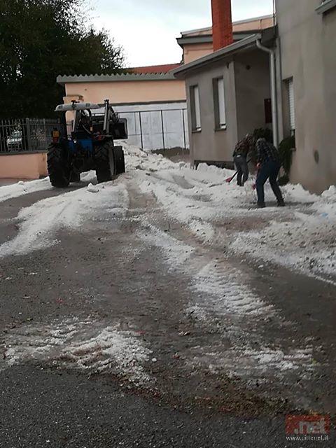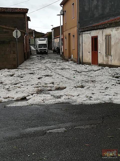 BORORE. Strade imbiancate da una grandinata violentissima che si è abbattuta questa mattina sul Comune di Borore. In alto, gli scatti giunti in redazione che immortalano la situazione questa mattina alle 10.30.