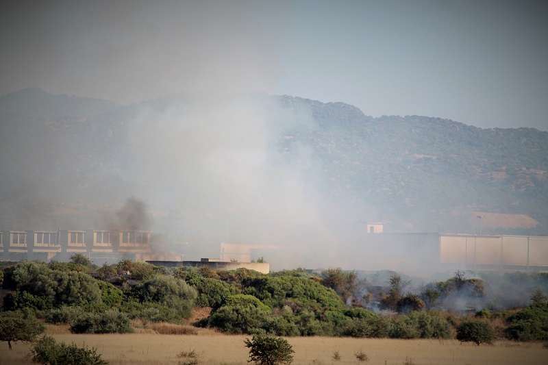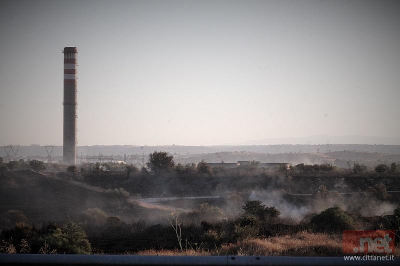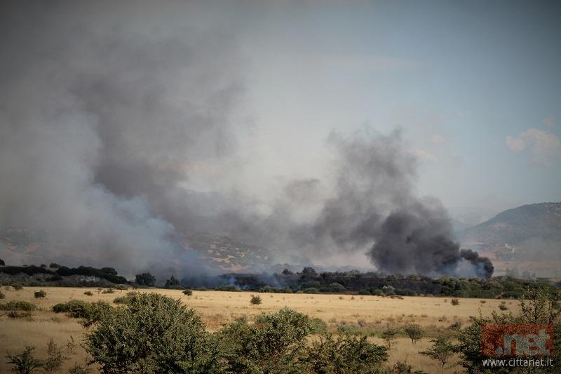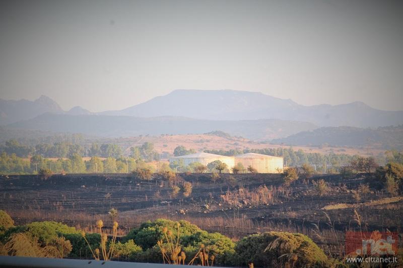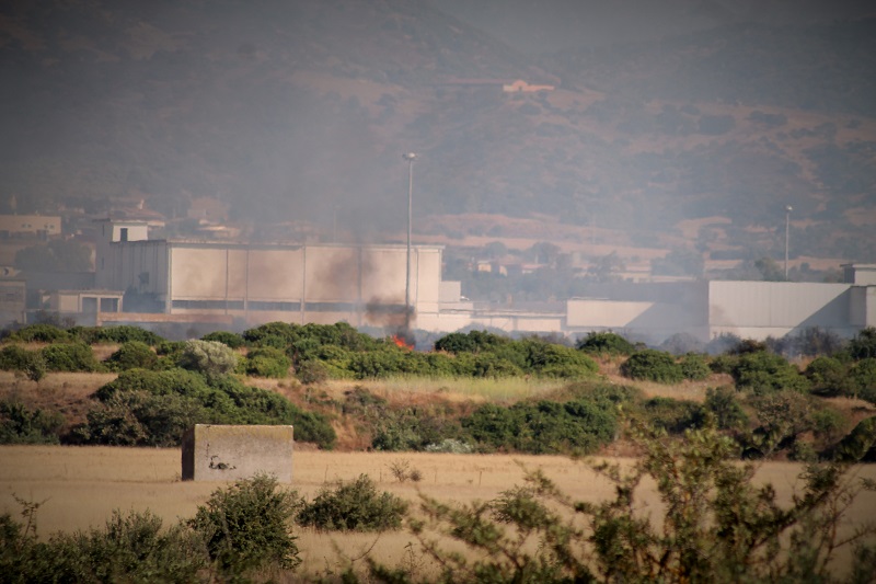Visivamente, verso le ore 17, il fuoco sembrava bruciare in due differenti luoghi all'interno dell'area industriale e le fiamme si sono spinte fino quasi all'asse stradale, bruciando non solo sterpaglie e macchia mediterranea, ma anche qualcosa di più corposo che ha sprigionato una nube di fumo nero e denso.