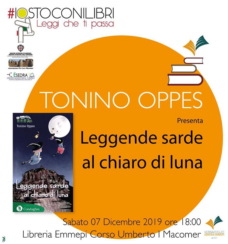 Sabato 7 dicembre è la volta del giornalista e scrittore Tonino Oppes e del suo ultimo lavoro "Leggende sarde al chiaro di luna", racconti giunti fino ai giorni nostri grazie alla loro trasmissione orale e che ora si tenta di preservare e strappare all'oblio riconoscendone il valore narrativo e culturale. Ad ospitare l'appuntamento aperto a tutti, programmato per le ore 18, sarà la Libreria Emmepi Ubik nel Corso Umberto di Macomer.