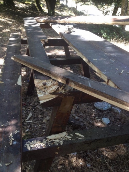 Un atto di vandalismo puro, che rivela tra l'altro una insopportabile avversione verso i beni comuni, che hanno come unica “colpa” quella di migliorare le condizioni dei luoghi nei quali si vive, da parte di alcuni vigliacchi che con i loro comportamenti non feriscono solo l'orgoglio di chi quel tavolo, con fatica e a proprie spese, ha costruito, ma quello di chiunque consideri la montagna un luogo nel quale accoglienza e servizi possano fondersi per costruire quel pezzo di economia legata al turismo sognata da sempre.