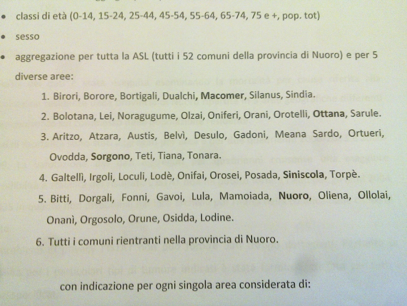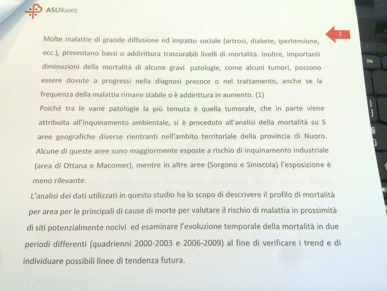 Tornando ai risultati dell'indagine, Succu ha affermato che “lo studio è sempre in continuazione e per questo non si può parlare di dati incompleti” (il documento della ASL scrive che “a causa di diversi ostacoli nella rilevazione dei dati, lo studio è ancora in corso” e che “tuttavia in via preliminare sono stati rilevati e analizzati i dati di mortalità per grandi gruppi di cause”).