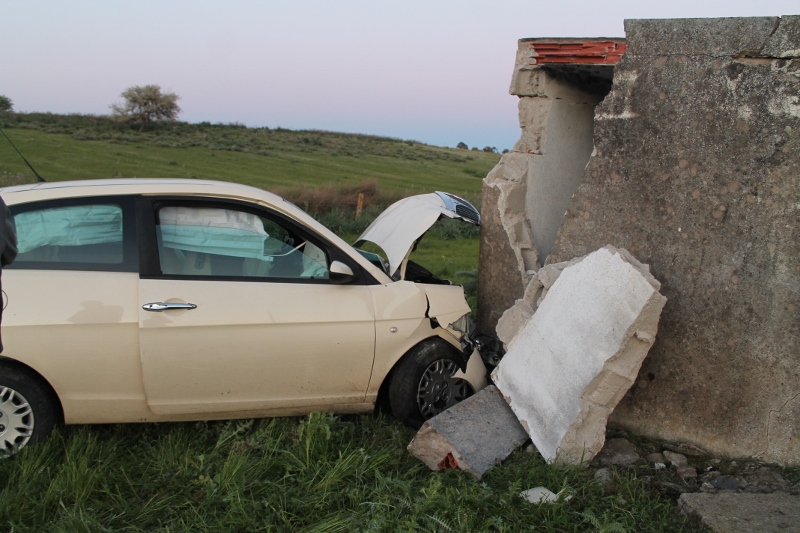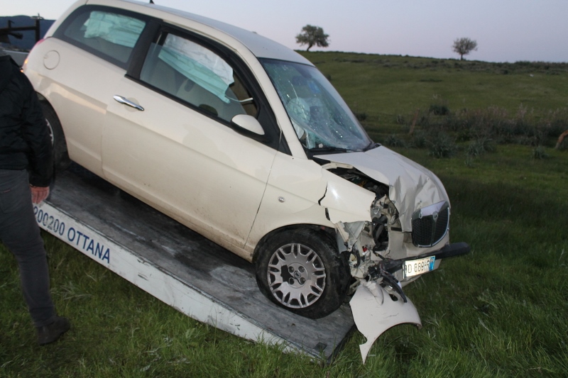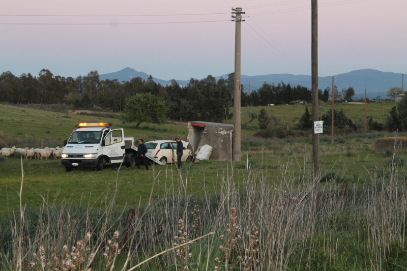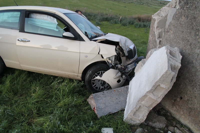 Brutto incidente sul rettilineo Bolotana Ottana. Poco dopo le 19 una Lancia Ypsilon che viaggiava in direzione Ottana, ha perso il controllo uscendo fuori strada, attraversando un pezzo di prato e finendo la sua corsa sopra il muro di un pozzetto all'interno di una azienda agricola.