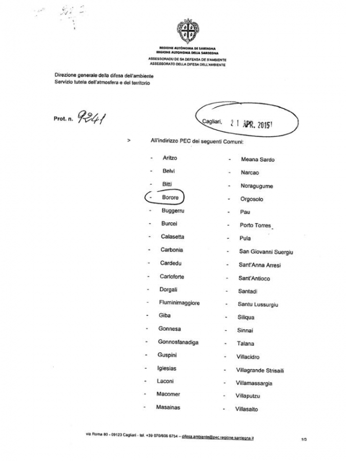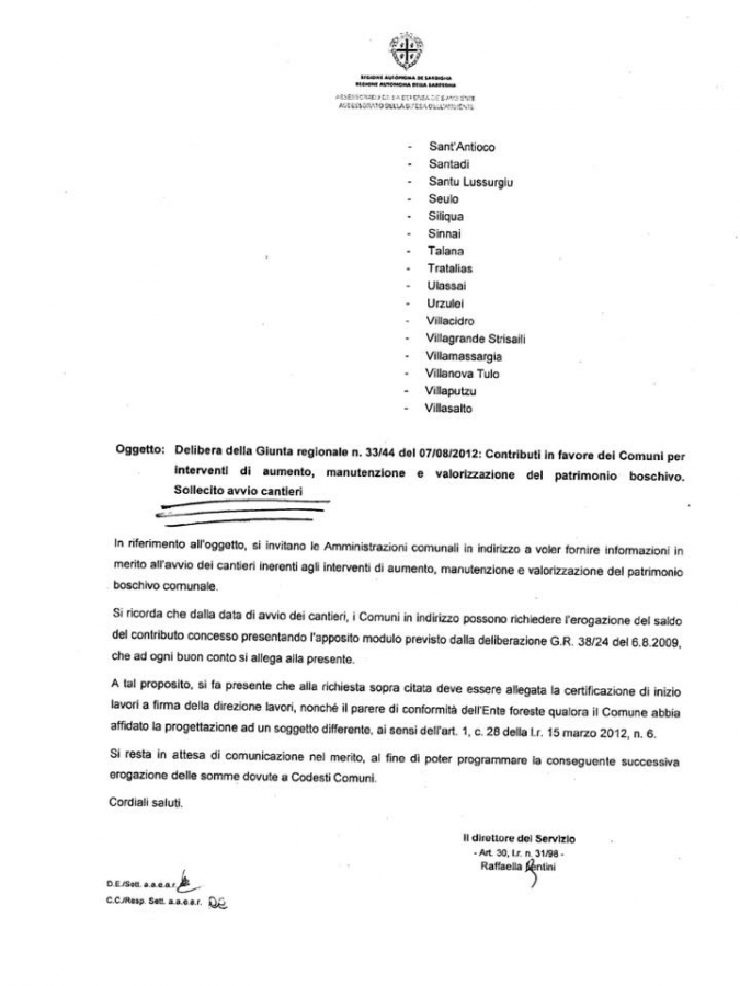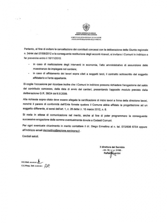 Il Comune di Borore aveva infatti ricevuto ben due comunicazioni, nel mese di Febbraio ( alleghiamo il documento 1 e 2 ) e nel mese di Aprile del 2015 ( alleghiamo il documento 1 e 2 e 3 ) , dove veniva sollecitato ad avviare i Cantieri Verdi relativi alle risorse stanziate nel 2012 e nel 2013. Solleciti ai quali non è seguita alcuna azione di avvio dei Cantieri.