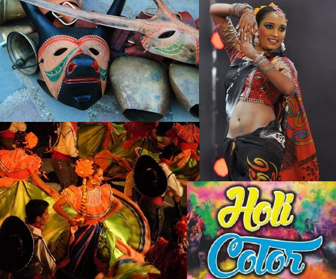 Musiche e balli internazionali unite al fascino delle esibizioni delle maschere tradizionali, ma anche, per la gioia dei giovanissimi, all'esplosione di colori e musica dell'Holi Colors.